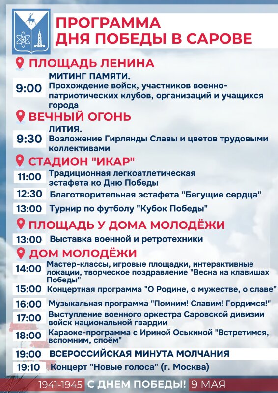 Афиша празднования Дня Победы стала известна в Сарове