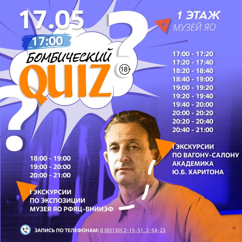 В главном зале на первом этаже в 17 часов пройдет «Бомбический квиз» (18+).