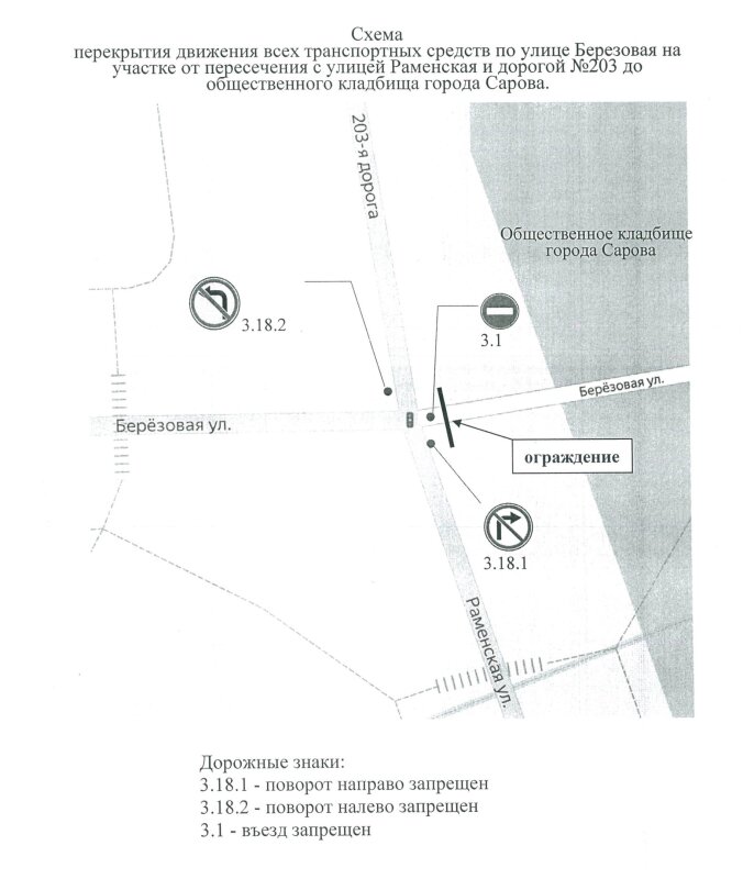 В этот день, с 12 до 20 часов, вводится временный запрет на движение транспортных средств по улице Березовой на участке от пересечения с улицей Раменской и дорогой № 203 до общественного кладбища. Об этом сообщает администрация Сарова.