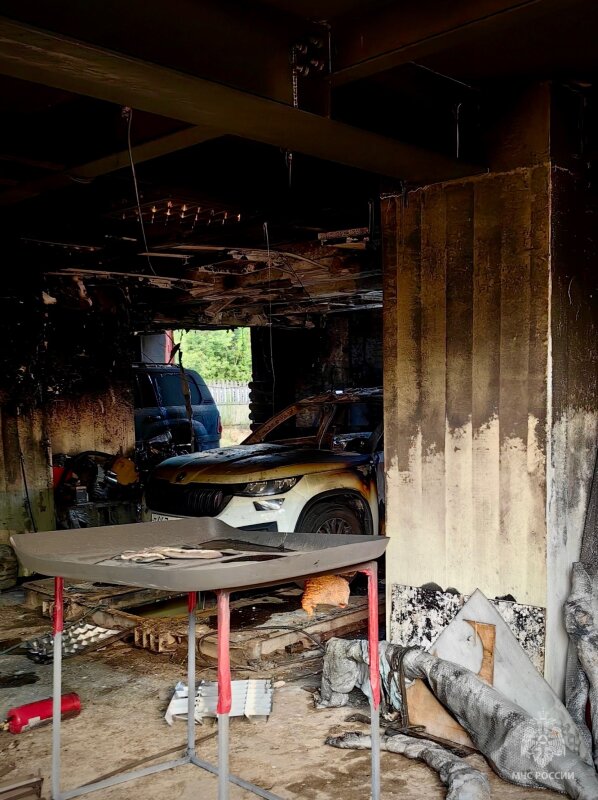 Площадь пожара составила 10 м². Огнем уничтожен автомобиль Skoda, частично повреждены отделочные материалы, личные вещи и оборудование в боксе.