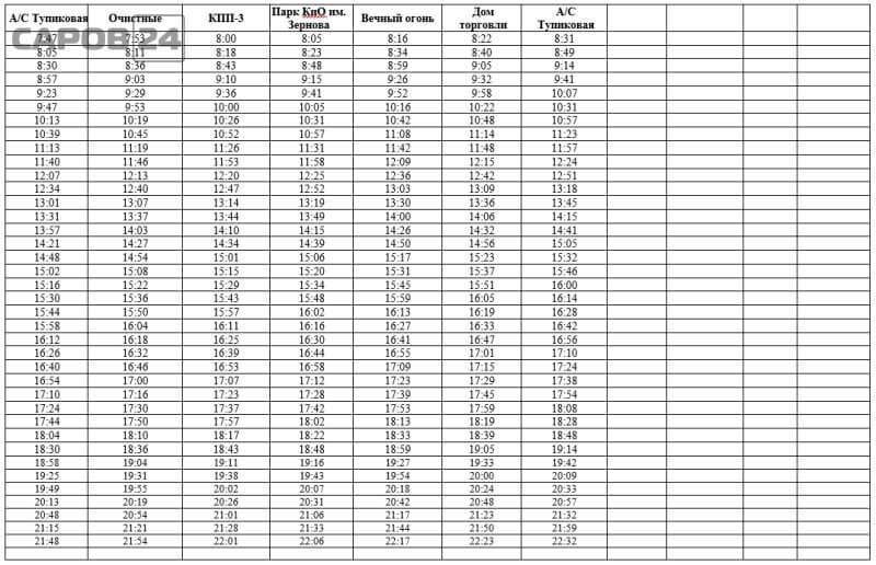 Путь следования автобуса: автостанция «Тупиковая» – ул. Железнодорожная – дорога № 123 – ул. Бессарабенко – ул. Силкина – ул. Александровича – пр. Ленина – ул. Академика Харитона – ул. Зернова – ул. Московская – ул. Курчатова – ул. Арзамасская – ул. Зернова– ул. Кирова – ул. Балыковская – ул. Дорожная – ул. Мостовая – ул. Дорожная – ул. Балыковская – ул. Кирова – ул. Зернова – ул. Арзамасская – ул. Зернова – ул. Курчатова – ул. Московская – ул. Зернова -ул. Академика Харитона –пр. Ленина – ул. Духова – ул. Силкина – ул. Бессарабенко – дорога № 123 – ул. Железнодорожная – автостанция «Тупиковая».