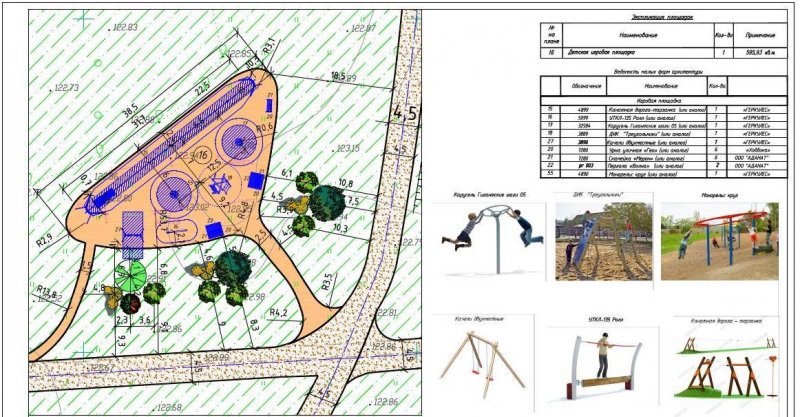 - строительство детской площадки на натуральном покрытии со скамьями под навесами;